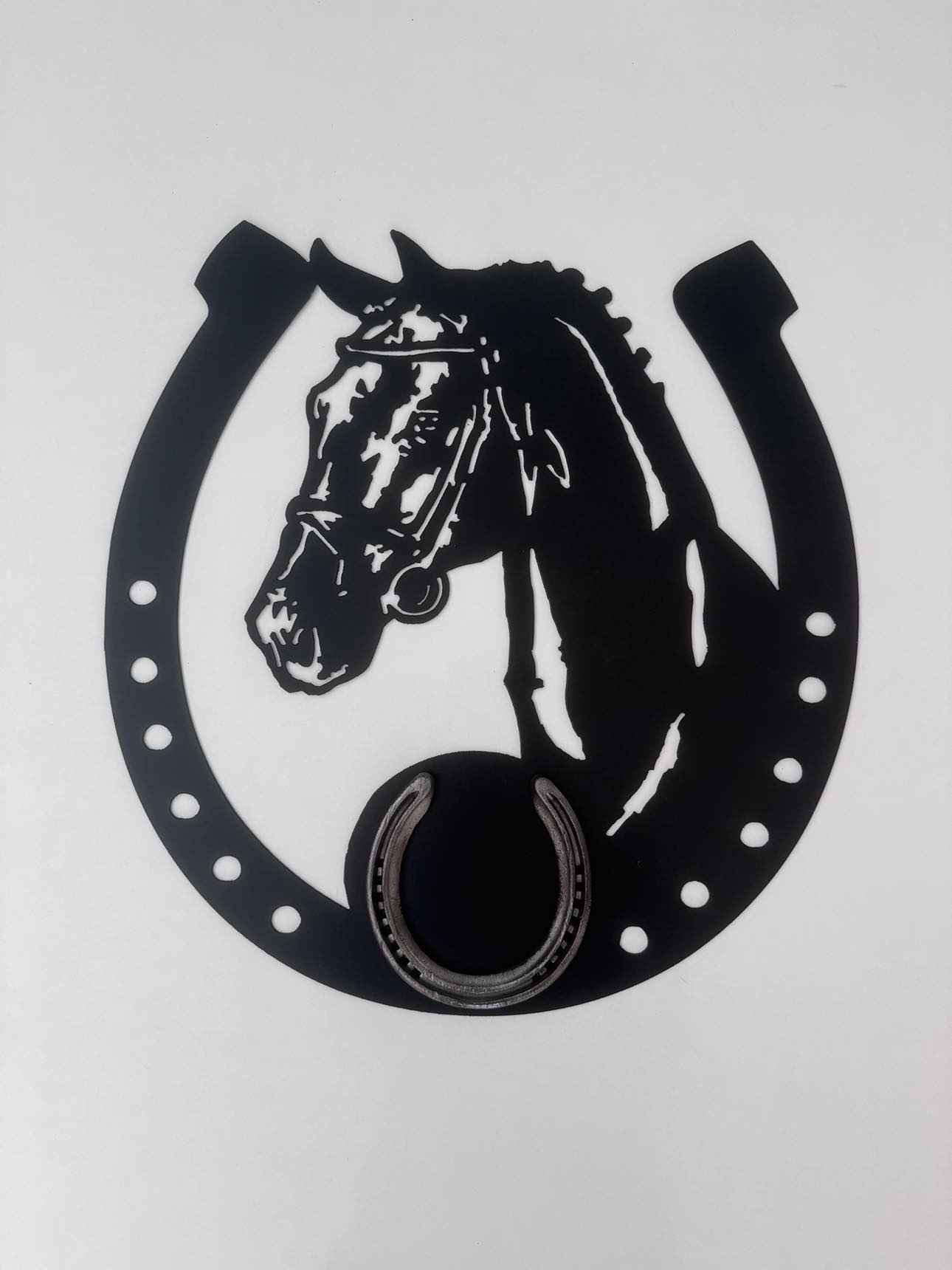 • Size 450mm wide x 450mm high • Made using aluminium sheet for a no rust guarantee. • Finished using automotive etch primer and matte black paint. • Genuine horseshoe overlay • $80